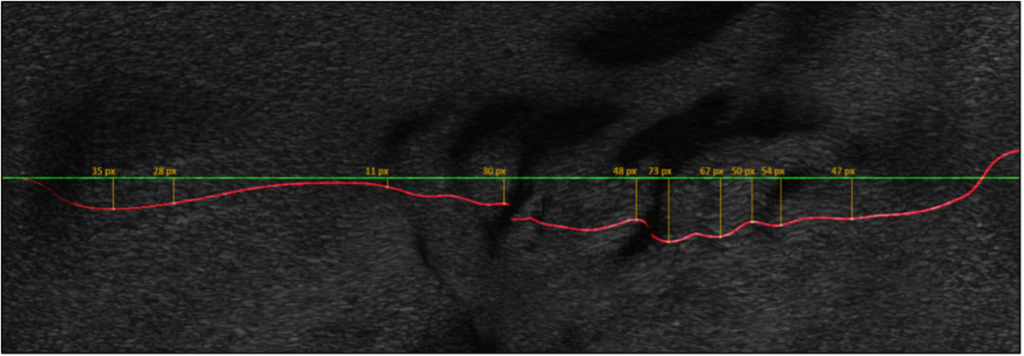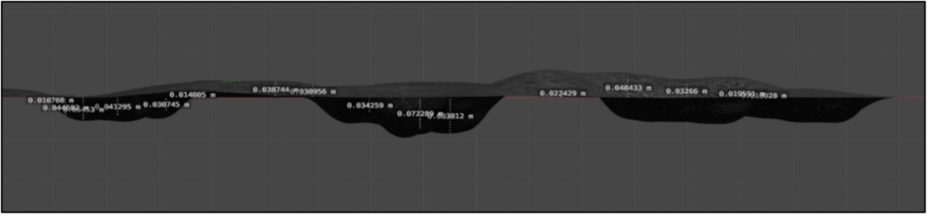 Figura 6 – Calcul adâncime și înalțime defecte definite în milimetri – vedere în secțiune